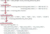 그런데 학습에 사용되는 데이터는 무언가 달라지는 것을 확인할 수 있기는 있었습니다. 먼저 위 스크린샷의 결과처럼 기존에는 있던 시가, 고가, 저가, 종가, 거래량이 없어진 것을 확인할 수 있었습니다.