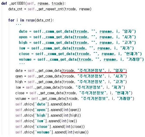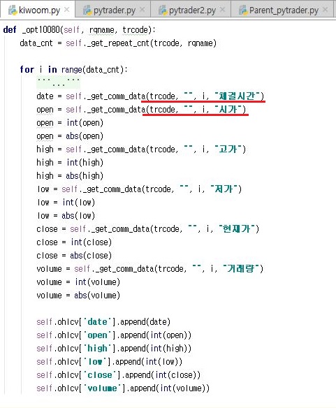 그리고 이번에는 분봉차트를 가지고 오는 메서드를 한번 손을 보아서, 일단은 여기까지 계속해서 손을 대도록 합니다. 그리고 나서 한번 pytrader2를 작동시켜 봅니다.