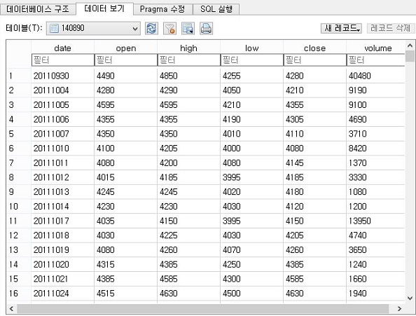 일단 pytrader를 실행시킨 다음에, 위 스크린샷에 보이는 일봉차트 가지고 오기라는 버튼을 누르고-그전에 저장 경로를 미리미리 지정해 주도록 합니다-일봉차트가 제대로 받아지는지를 보면 됩니다.