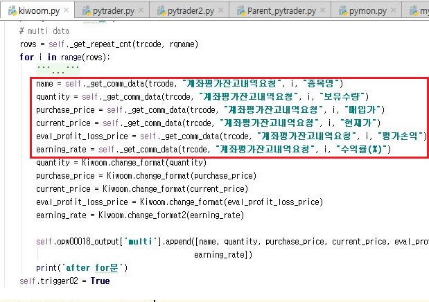 그래서 계속해서 바꿔도 안되기에, 한번 위 스크린샷처럼 pytrader2를 실행시켰을 때, single과 multi의 데이터가 어떻게 구성이 되어 있는지에 대해서 한번 표식을 찍은 다음에 알아보고자 합니다.