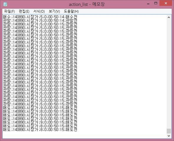 그리고 나서 action_list.txt라는 RLTRader가 제대로 성공했으면, 제대로 된 결과를 내주는 파일을 보았더니, 정말로 매도까지 제대로 된 액션을 취하는 것까지 확인을 할 수 있었습니다.