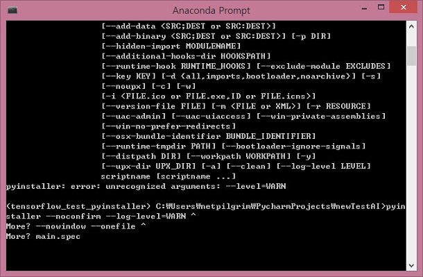 일단 여기서는 pyinstaller --noconfirm --log-level=WARN --nowindow --onefile main.spec을 아나콘다 프롬프트에서 입력해서 exe파일을 만들어 보도록 합니다.