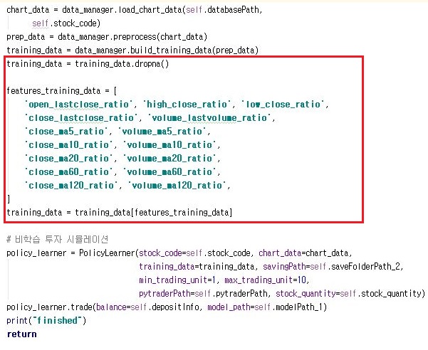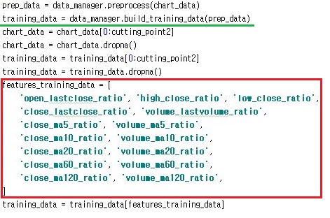 먼저 위 스크린샷을 보시면, 기존의 수익모델을 만들기 위해서 사용하는 yellowoperation 프로젝트의 main.py입니다. 여기서는 위 스크린샤을 보시면 17개의 입력 모델이 들어가기 위해서는 위 스크린샷처럼 training_data에서 특정한 항목을 제한해야 할 필요가 있습니다.