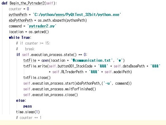 그래서 이번에는 pytrader2의 부모 프로세스를 실행시켜서 제대로 된 종목코드를 비롯한 데이터를 입력해서 작동시켜 보도록 합니다.