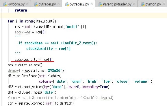 그래도 결과를 정리해 보니까, 일단 매수를 매도에 비해서 많이 했다는 것을 확인할 수 있기는 있었습니다. 다만 수익이 나지 않은 것은 유감이기는 합니다만, 그래도 어떻게 해서 모의주식 투자에 들어가 보았다는 것에 의의가 있다고 할 수 있겠습니다. 이제 Parent_pytrader를 어떻게 완성하는 것이 남아 있습니다.