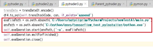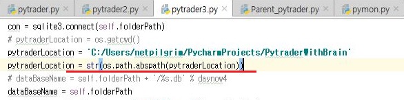 일단 위 스크린샷에 보이는 것처럼, pytrader3에서 기존에 있던 pytrader위치를 아예 문자열 변수로 만들어서 직접 전달하고자 합니다.