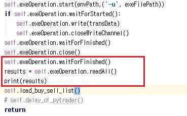 다음으로는 자식 프로세스에서 결과를 받아보기 위해서, 위 스크린샷과 같이 자식 프로세스가 끝나기를 기다린 다음에, 결과를 readAll()로 읽어 오도록 합니다.