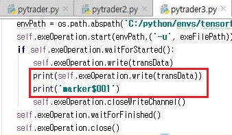 먼저 RLTrader로 가서, 여기서 나온 결과를 다시 pytrader3로 보내기 위해서 한번 위 스크린샷처럼 write()함수를 쓰도록 해 봅니다.