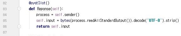 그리고 신호가 들어오면, 위 스크린샷처럼 @로 데코레이션이된 메서드가 호출이 되는데, 이 호출이 된 메서드에서 신호를 str형식으로 현환이 되도록 만들어 주도록 합니다. 그러나 이러한 방법을 써도 상황이 좋지가 않았습니다.