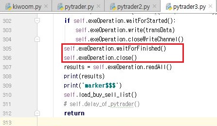그리고 나서 pytrader3로 가서는 자식 프로세스가 완료되기를 기다힌 다음에 닫도록 명령을 내려 주도록 해 봅니다. 이렇게 해서 이제 pytrader3를 실행시켜 봅니다.