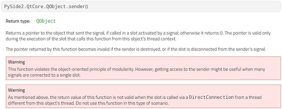 다음으로는 한번 Qt의 매뉴얼 페이지를 읽어보니까, QProcess에 있지는 않지만, QObject에 있는 self.sender()를 통해서 신호가 오면 호출이 되는 함수가 있는데, 이 함수를 이용해서 받는다는 것을 볼 수 있었습니다.