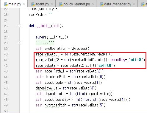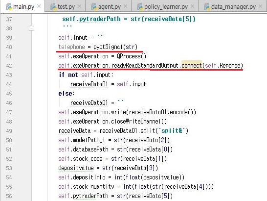 먼저 RLTrader로 가서, 여기서 나온 결과를 다시 pytrader3로 보내기 위해서 한번 위 스크린샷처럼 write()함수를 쓰도록 해 봅니다.