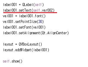 다음으로는 레이블의 텍스트를 setText()라는 함수를 이용해서 여기 안에다가 변수를 지정하는 방식을 사용해서, 앞으로 정보가 들어오면 바뀌는 것으로 만들어 보았습니다.
