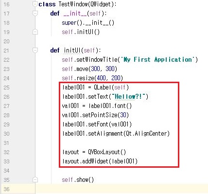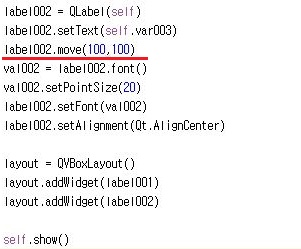 그래도 효과가 없어서 마지막으로 move()라는 함수를 사용해서 아예 레이블을 옮기는 방법을 사용하도록 합니다. 일단 이렇게 하는 식으로 해서 진짜로 효과가 있는지 보도록 합니다.