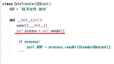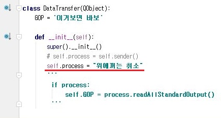 그래서 한번 self.process라는 변수를 self.sender()가 아니라 문자열로 바꾼 다음에, 이를 한번 표시해 보고자 해서, 제대로 나올 수 있는지 여부를 따져 보도록 합니다.