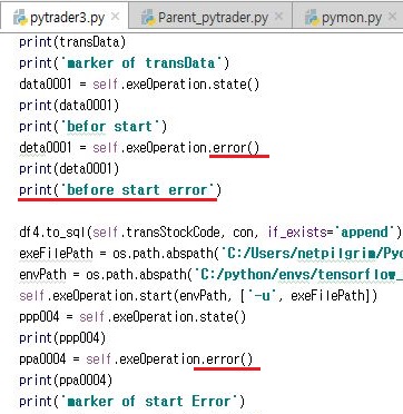 다음으로 부모 프로세스인 pytrader3.py에서 실행을 시킨 결과, 자식 프로세스인 RLTrader까지 실행이 되기는 되었습니다. 그래서 여기서 알 수 있는 것은 하나인데, 일단 제대로 된 데이터가 전달이 된 것도 아니고, 읽기에 있어서 무슨 에러가 실행이 된 것도 아니라는 것을 알 수 있었습니다. 결국 이번 포스팅에서 나온 다양한 시도를 한 것은 좋았으나, 정작 나아진 것은 없었습니다.