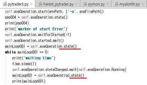 그리고 나서 이 state()라는 함수를 한번 다양한 장소에 사용을 해서, 어느 순간 QProcess가 어느 순간 죽어버리는 것은 아닌지 알아보도록 합니다.