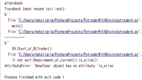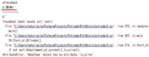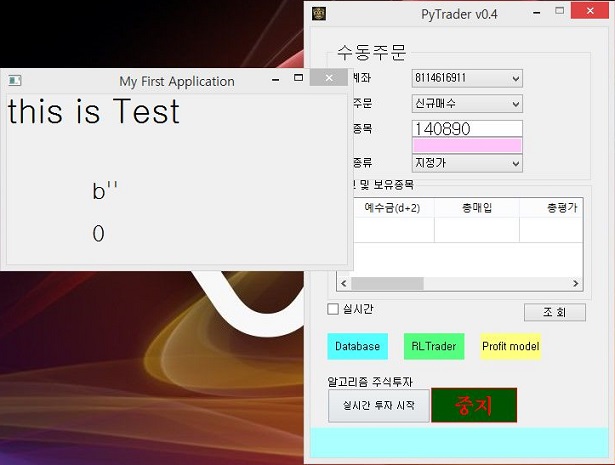 다음으로는 부모 프로세스인 pytrader4.py에서는 입력이 될 데이터를 아예 입력하지 않도록 해 봅니다. 그리고 나서 자식 프로세스가 실행이 되면, 0이 결과로 나올 것 입니다.