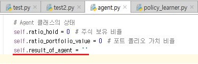 그리고 나서 위 스크린샷과 같이 Agent()클래스를 활성화 시킨 다음에, 여기서 있는 클래스의 변수를 가지고 오도록 만들어 봅니다.