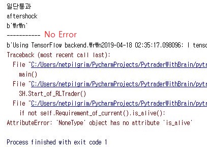 이번에는 성공할 것이라고 믿고서, 한번 위 스크린샷처럼 pytrader4인 부모 프로세스를 실행시켜서 진짜로 결과가 나오기를 기대하였습니다만.....