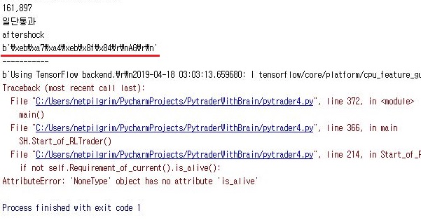 그리고 나서 이 결과를 한번 위 스크린샷처럼 Debug에서 나왔을 때, 제대로 나왔는 것을 볼 수 있기는 있었습니다. 일단 여기서는 매수라는 결과가 드디어 agent.py를 뛰어서 main.py로 옮겨온 것을 볼 수 있습니다.