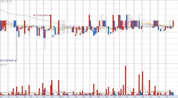 일단 하이골드12호처럼 펀드인 종목을 제외하고서라도, 13개에 이르는 종목이 ADF 테스트를 통과한 것을 볼 수 있습니다. 이 조건을 보면, 가장 검정통계량이 작은 신흥(004080)이라는 종목을 먼저 선택해서 분봉차트를 보고자 합니다.