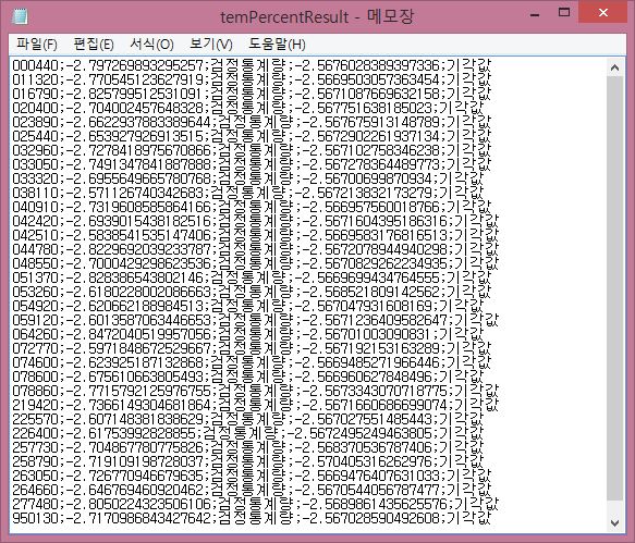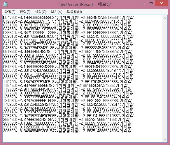 일단 종목자체가 많은 탓인지는 모르겠습니다만, 10%의 오차범위 내에서 걸렸는 종목들이 위 스크린샷과 같이 상당히 많다는 것을 알 수 있었습니다.