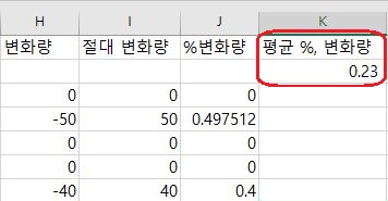 그래서 어디가 문제인지 알아보기 위해서, 이번에는 한번 신흥의 올해 3월 20일부터 현재가의 변화량이 평균 몇 %인지를 알아보고자 했습니다. 그 결과 1%를 밑도는 결과를 확인할 수 있었습니다.