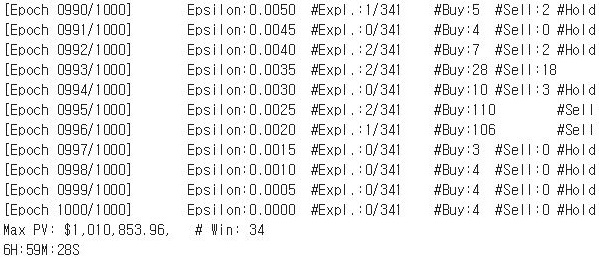 일단 10, 200, 600, 1000에포크 일때를 한번 비교해 보고 있습니다만, 어찌된 것인지 모르겠습니다만, 조금도 초반부터 수익이 전혀 나오지 않는 것을 볼 수 있습니다.