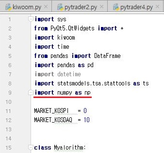 먼저 이 작업-지난번에 ADF 테스트는 했으므로, 이번에는 허스트 지수를 해 보기 위해서는 먼저 numpy를 가지고 와야 했으므로, import해 오도록 합니다.