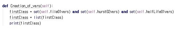 그래서 이번에는 위 스크린샷과 같이, var = set(리스트A) and set(리스트B) 라는 공식을 이용하도록 합니다. 이 공식이 찾아보니까, 리스트 두개에서 일치하는 요소를 골라낼 수 있다고 합니다.