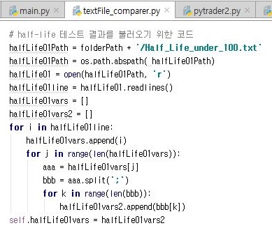 이렇게 해서 리스트 형식으로 바뀌어 지는 것 까지 확인을 할 수 있는 것도 볼 수 있었습니다. 이제 2개의 리스트에서 비교분석을 하고나서 데이터 추출이 끝났기 때문에, 다음으로는 Half-Life 테스트의 결과와도 한번 비교 분석 이후, 일치하는 종목코드의 추출에 들어가 보도록 합니다.
