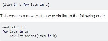 그런데 가만히 보다보니 위 스크린샷과 같이 파이썬의 코딩에서 약간의 재주라고 해야 할까요? [var in b for var in a]라는 것으로 for문을 번거롭게 쓰고, list를 따로 생성하지 않아도 이 작업들을 한꺼번에 할 수 있도록 해주는 것이 있습니다. 그리고 이 방법을 사용해서 리스트 a와 b에 있는 요소들이 서로 일치하는 것이 있는지를 알 수 있습니다.