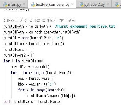 그리고 나서 허스트 지수를 계산한 결과를 불러오기 위한 코드도 역시 for문을 3중으로 써서까지 모은 요소 하나하나를 띄워 주도록 합니다.