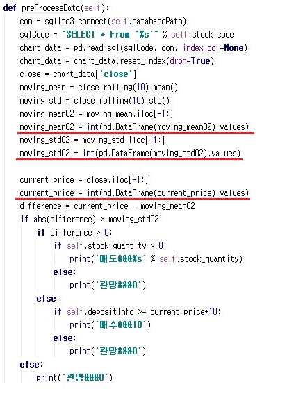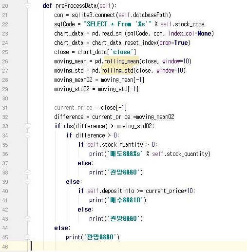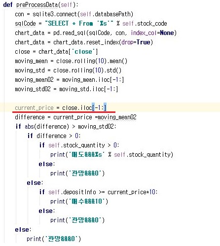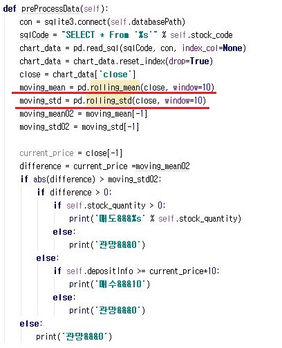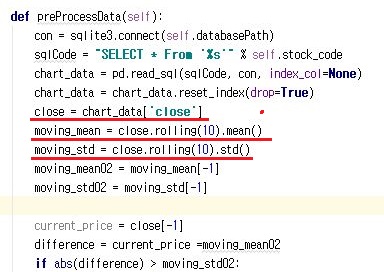 그리고 나서 위 스크린샷처럼, pandas에서는 평균과 표준편차를 구할 수 있는 함수가 있기는 있습니다. 그래서 이 방법을 사용하는 것으로 10일 이동평균선을 구하도록 합니다.