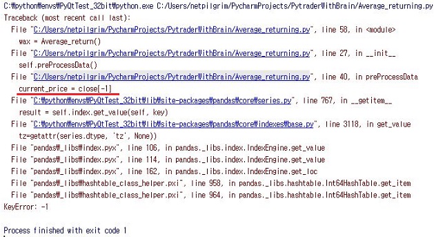 가장 마지막 row를 선택하는 과정에서 문제가 있었습니다. 이게 리스트가 아니라 데이터 프레임이라는 것을 잊어서 벌어진 일인데, 해당하는 것으로 iloc[] 함수를 사용해서 한번 만들어 주도록 합니다.
