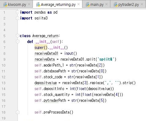 먼저 Average_return이라는 클래스를 하나 만들어 보도록 합니다. 그리고 나서 초기화를 하는 메서드에서 input()을 사용해서 부모 프로세스로 부터 데이터를 가지고 오도록 만들어 보도록 합니다.