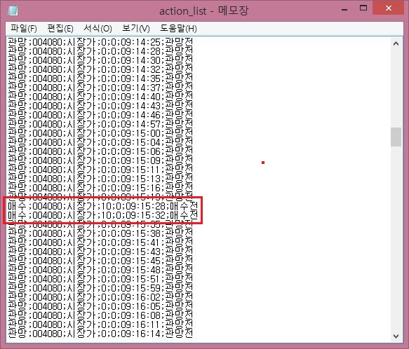 거기다가 분명히 매도가 있는 것을 actioin_list.txt에서 확인을 할 수 있었습니다만, 어찌도니 것인지 매매가 전혀 되지 않았습니다. 아무래도 신흥이라는 종목 자체의 거래량이 너무 없어서 생기는 문제가 아닌가 하는 생각이 들기도 합니다만, 이것도 이것대로 해결해야 겠다는 생각이 듭니다.