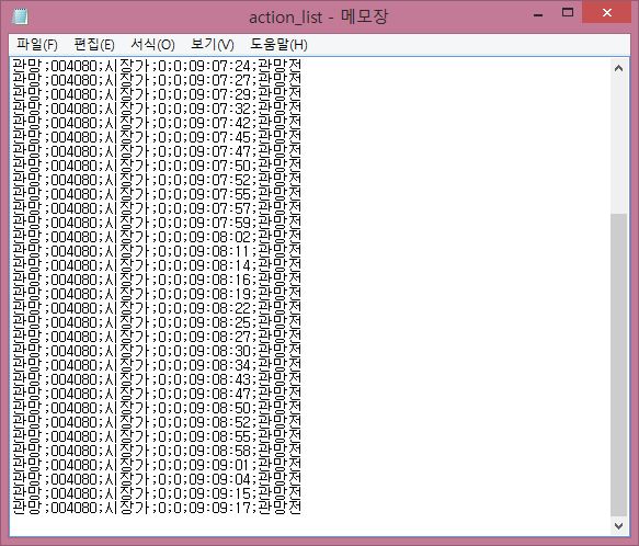 일단 action_list.txt에서 어떤 행동을 하는지 초반에 나오는 것을 확인할 수 있기는 있었습니다. 이제 남은 것은 이게 계속해서 작동을 하느냐 여부인데..........