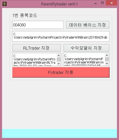 그리고 자동으로 작동을 해 주리라 생각을 하는 중에 일단 pytrader4의 부모 프로세스를 한번 작동시켜 보도록 합니다. 이걸 이제 신흥을 지정해서 데이터 베이스 등도 지정해 줍니다.