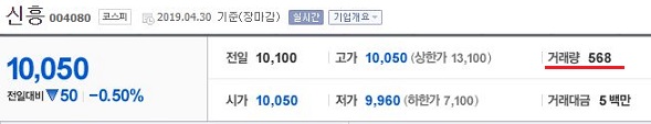 먼저 신흥의 거래량을 보시면, 거래량이 1000이하다 못해서 600이하인 것을 확인할 수 있기는 있습니다. 그래서 지금까지 매도 주문을 해도 누구하나 사가지 않는 이유가 오로지 이 거래량이 문제라고 생각이 들었습니다.