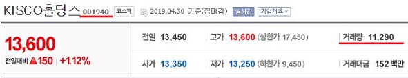 먼저 KISCO홀딩스라는 종목을 보았습니다. 이 종목에서는 거래량이 1만을 넘어가는 것으로 더 많은 거래량으로 움직이는 것을 확인할 수 있었습니다.