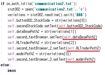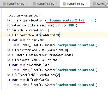 그리고 기존의 pytrader4를 복제해서 만들어 놓은 pytrader5에서는 위 스크린샷과 같이 communication2.txt라는 텍스트 파일을 읽어보도록 합니다.