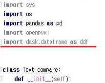 그리고 나서 위 스크린샷처럼 dask.dataframe.from_pandas(기존의 데이터 프레임) 이라는 식으로 입력을 해서, 기존의 pandas의 dataframe을 dask의 dataframe으로 바꾸어 주도록 합니다.