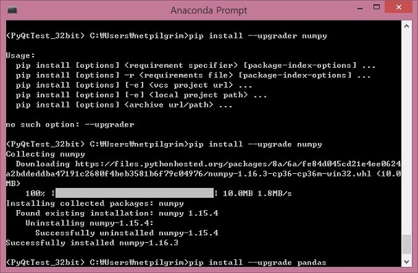 다음으로는 위 스크린샷과 같이 pandas로 인식하지 못하기 때문에 역시 같은 pip 명령어를 사용해서 업그레이드를 시켜 보도록 합니다.