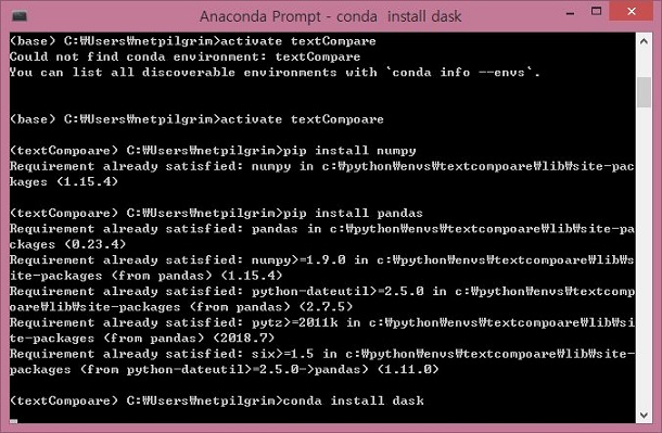 먼저 textCompare라는 환경을 불러 오도록 해야 하는데, 환경을 만들 때 부터 무슨 에러를 냈는지, 오타가 나 버리고 말았습니다.
