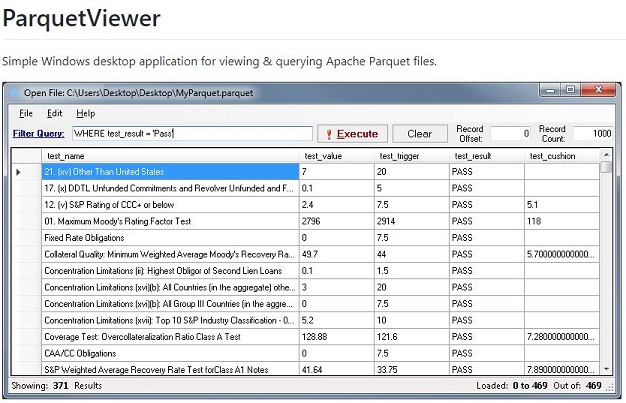 일단 한번 찾아보니까, 간단하게 이 parquet형식의 파일을 볼 수 있는 프로그램인 parquetViewer라는 것을 확인할 수 있었습니다. 인스톨도 필요없이 그냥 압축파일만 풀면 간단하게 볼 수 있었습니다.