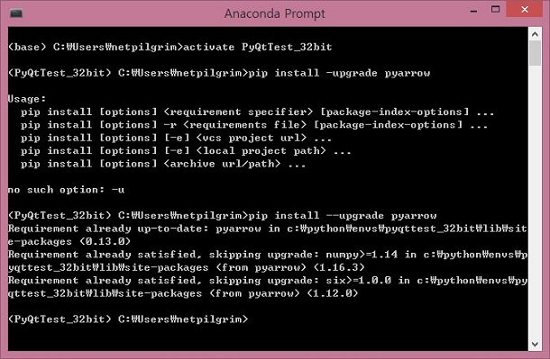 그래서 왜 인식이 안되는지 한번 pip 명령을 써서 인스톨을 시켜 보니까, 아예 이 pyarrow는 32비트 체제에서는 지원이 되지 않는다는 것을 알 수 있었습니다.