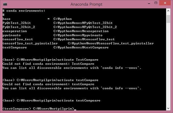 먼저 textCompare라는 환경을 불러 오도록 해야 하는데, 환경을 만들 때 부터 무슨 에러를 냈는지, 오타가 나 버리고 말았습니다.