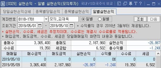 | 2019년 5월 14일 주식 모의투자에 들어간 결과 발생한 조그만한 수익 (0) | 2019.05.14 |